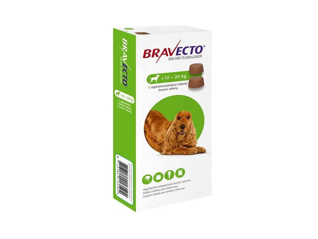 Bravecto Dog M žuvacie tablety M 10-20 kg 500 mg 2 x 1 tbl.