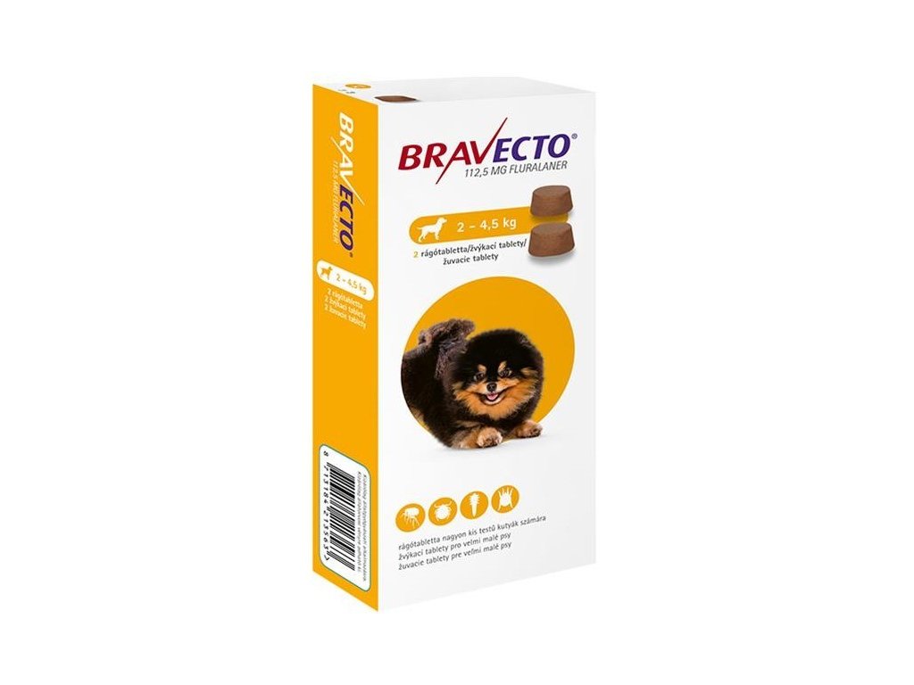 Bravecto Dog XS 112,5 mg žuvacie tablety pre veľmi malé psy ( od 2 do 4,5 kg ) 2 x 1 tbl.
